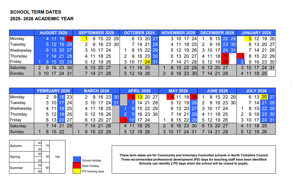 Term and holiday dates for academic year 2025 – 2026