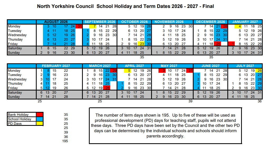Term and holiday dates for academic year 2026 – 2027